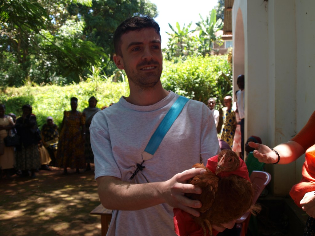Om søndagen tog vi i kirke, og det var en spændende oplevelse. Generelt elsker jeg at deltage i udenlandske gudstjenester, da det er interessant at opdage nye sider af religion. Under gudstjenesten skulle vi to gange op og tale om, at vi var glade for at være her osv. Dog var det mest spændende det, der skete efter gudstjenesten. Her stillede menneskerne sig uden for kirken i en ring, og en aktion begyndte. I tror måske, at det er løgn, men vi købte en høne for 10 dollar. Efter kirken skulle vi bestige et bjerg, hvilket virkelig var hårdt for mine ben, som af en eller anden grund aldrig har virket optimalt. Dog var det det hele værd, for ved toppen kunne vi se over til Kenya.